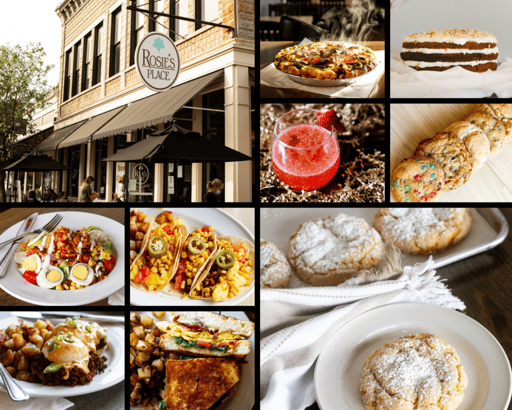 Rosie’s is a family-owned restaurant known for its all-day breakfast, hearty brunch, and fresh lunch options, as well as a bakery with homemade goodies such as cake slices, brownies, bars, and a variety of cookies. Rosie’s is famous for their Gooey Butter Cookies, baked fresh daily.