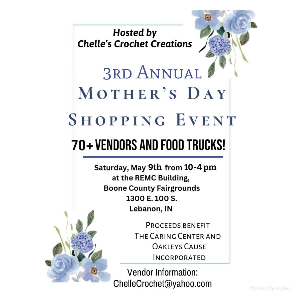 We’re excited to announce our 3rd Annual Mother’s Day Shopping Event on May 9th, 2026, from 10-4, in the REMC Hall at the Boone County 4-H Fairgrounds. Our event is FREE admission for all.