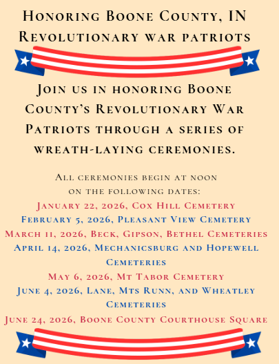 Honoring Boone County, IN Revolutionary War Patriots Wreath-Laying Ceremonies