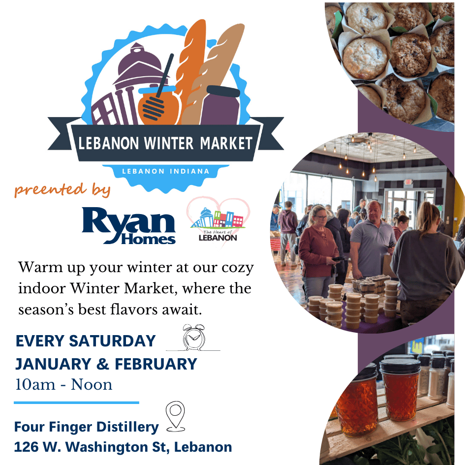 Shake off the winter chill and join us for the 2026 Winter Market, proudly presented by the Heart of Lebanon in partnership with Ryan Homes! We are gathering once again at Four Finger Distillery to celebrate community, connection, and local goods.