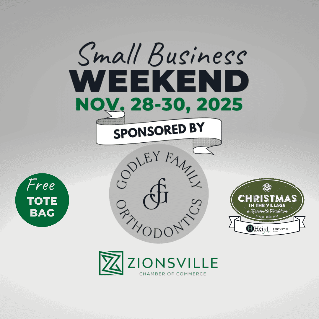 Celebrate Black Friday and Small Business Saturday right here in Zionsville! Shop local, support your favorite small businesses, and receive a FREE Chamber Tote Bag while supplies last!