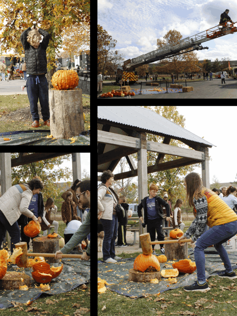 The Epic Pumpkin Drop – Courtesy of Zionsville Fire Department’s ladder truck