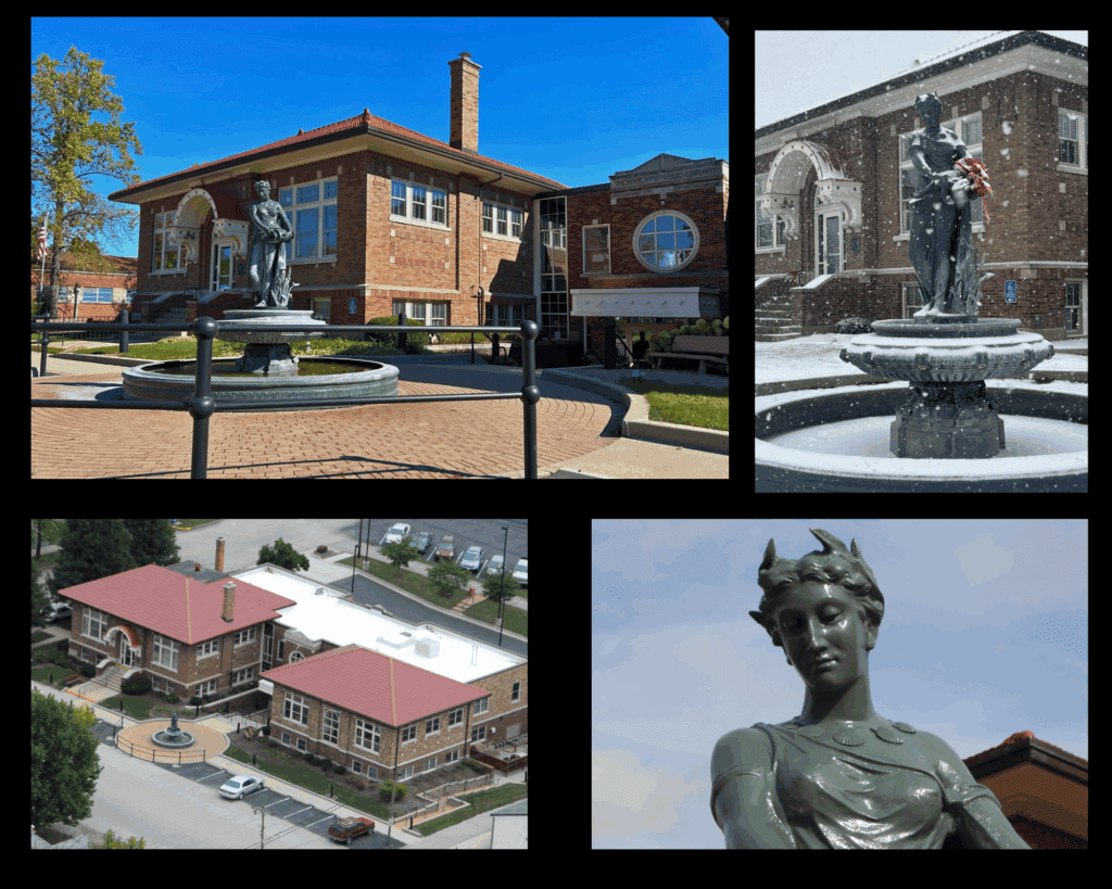 The Thorntown Public Library happily serves the residents of Sugar Creek, Jefferson, and Washington Townships in the northwest corner of Boone County, Indiana. It also features Helen at the Well, a replica fountain of the original that graced Main and Market Streets from 1909 to 1944.